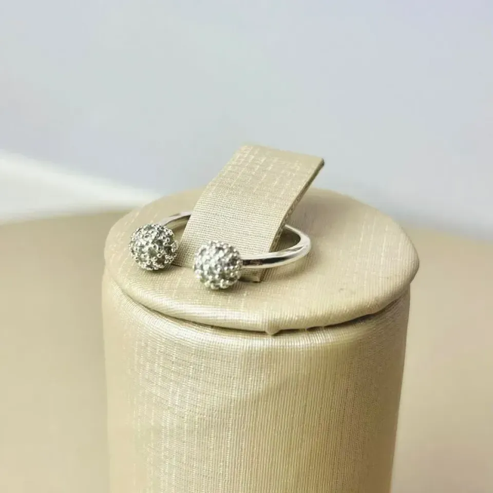 Anel Bolinha Dupla Cravejado Banhado a PrataConfira opiniões e avaliações de clientes!