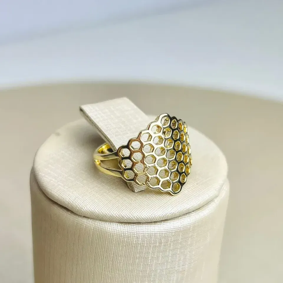 Anel Colmeia Geométrico Banhado a OuroConfira opiniões e avaliações de clientes!