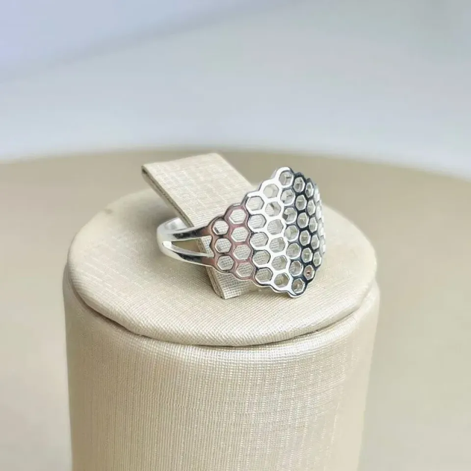 Anel Colmeia Geométrico Banhado a PrataConfira opiniões e avaliações de clientes!
