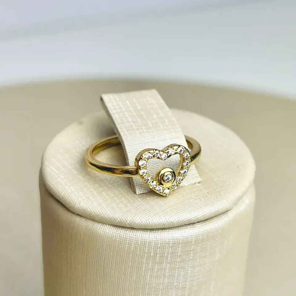 Anel Coração Cravejado com Bolinha Banhado a OuroConfira opiniões e avaliações de clientes!