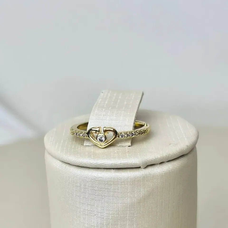 Anel Coração Duplo Cravejado Banhado a OuroConfira opiniões e avaliações de clientes!