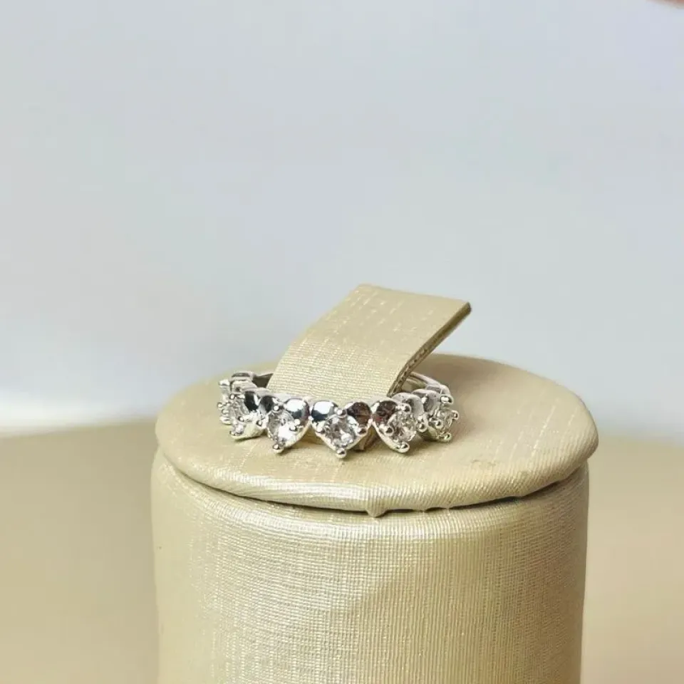 Anel Coracao Pedra Cravejado Banhado a PrataConfira opiniões e avaliações de clientes!