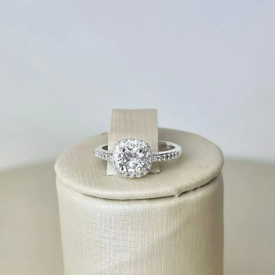 Anel Cravejado Pedra Quadrada Banhado a PrataConfira opiniões e avaliações de clientes!