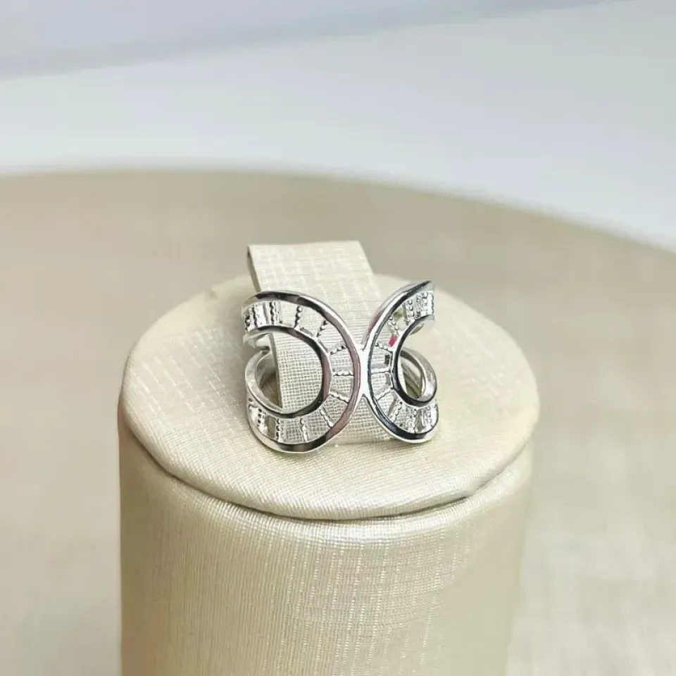 Anel Curvado Vazado Banhado Prata