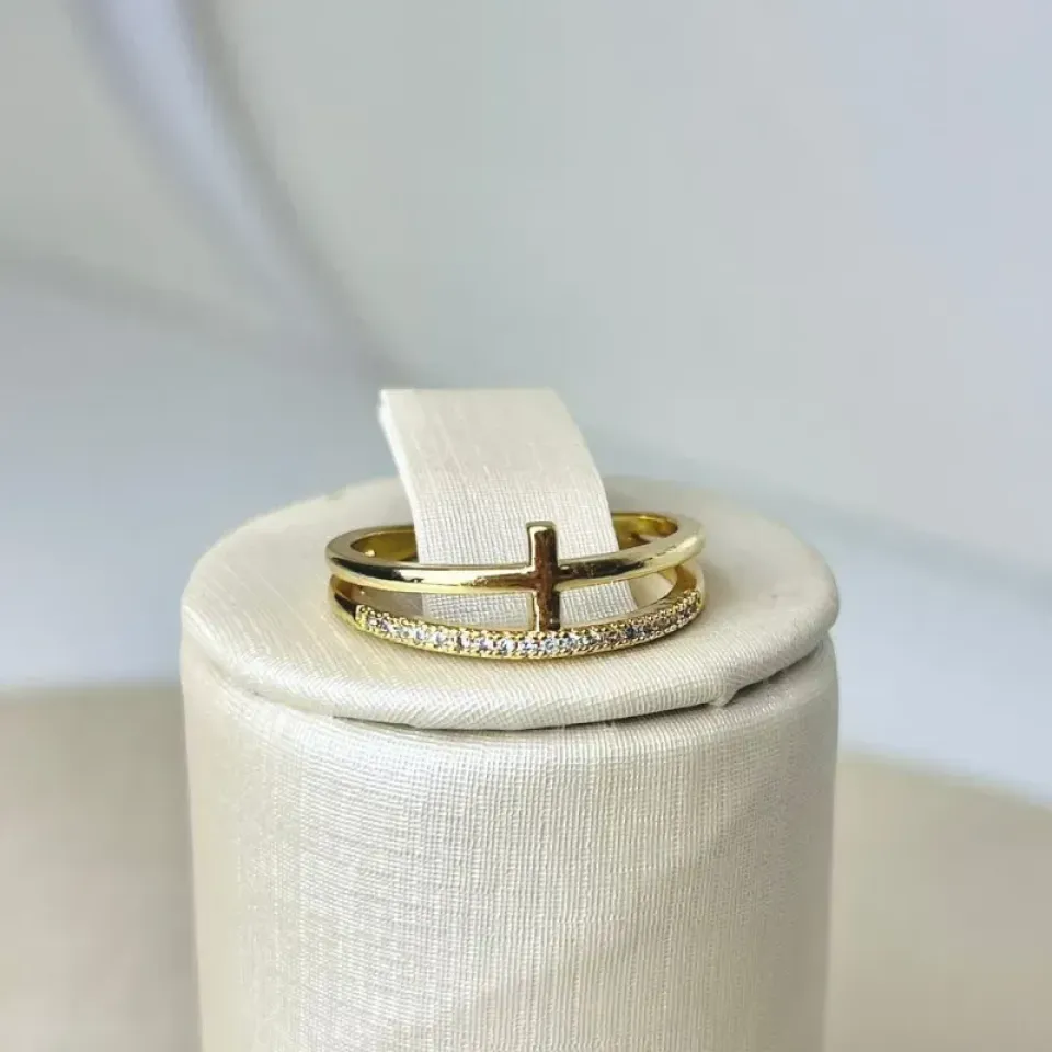 Anel Dublo com Cruz Cravejado Banhado a OuroConfira opiniões e avaliações de clientes!