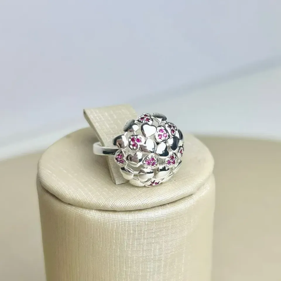 Anel Flor Pedra Rosa Banhado a PrataConfira opiniões e avaliações de clientes!
