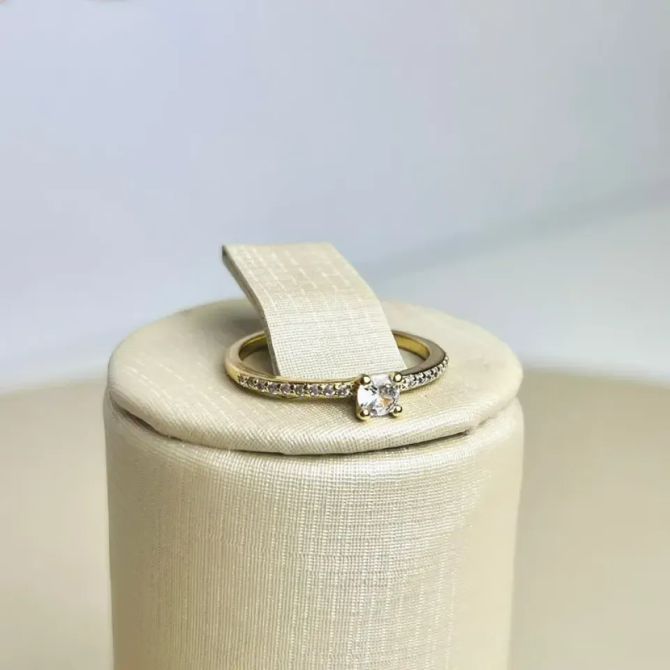 Anel Solitário Cravejado Banhado a OuroConfira opiniões e avaliações de clientes!