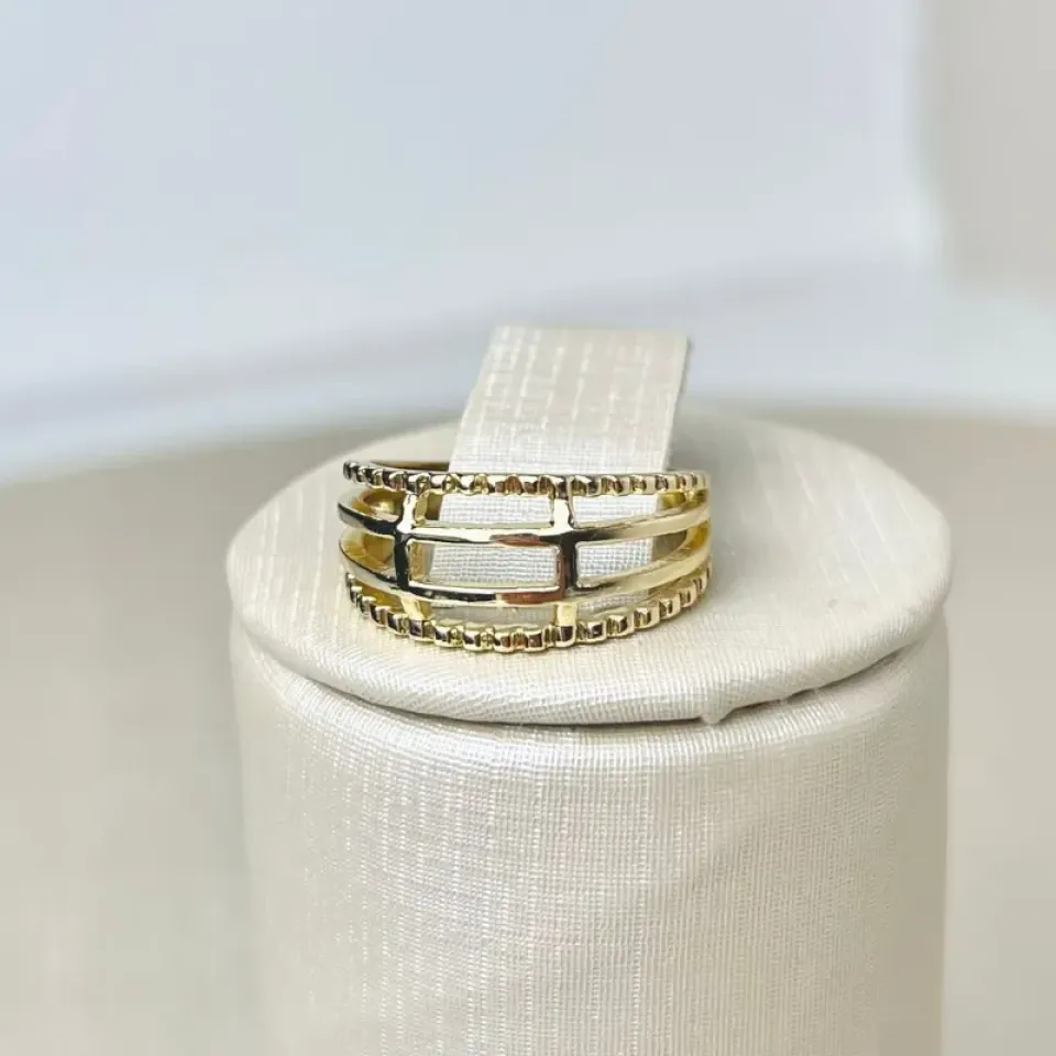 Anel Trançado Pontilhado Vazado Banhado a Ouro