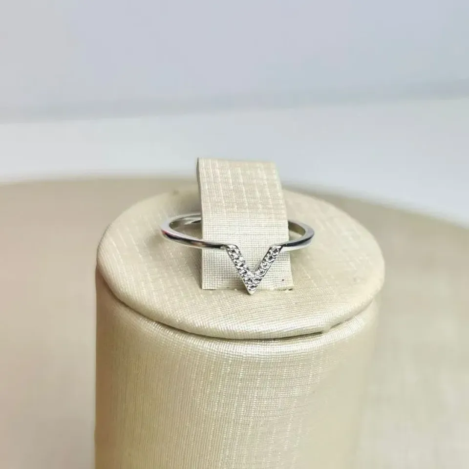 Anel V Cravejado Banhado a PrataConfira opiniões e avaliações de clientes!