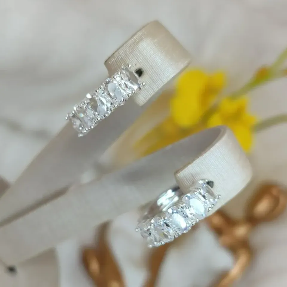 Argola com Zirconias Navete Banhada a PrataConfira opiniões e avaliações de clientes!