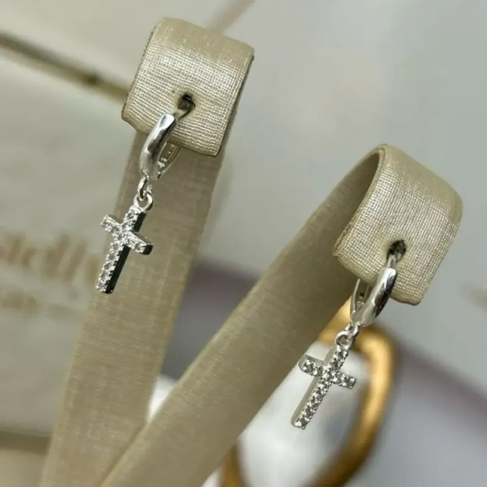 Argola cruz Cravejada (black) Banhado a PrataConfira opiniões e avaliações de clientes!