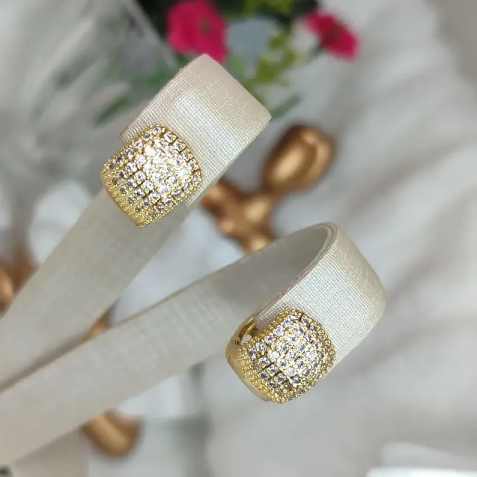 Argola Gordinha Pequena Cravejada Banhada a OuroConfira opiniões e avaliações de clientes!