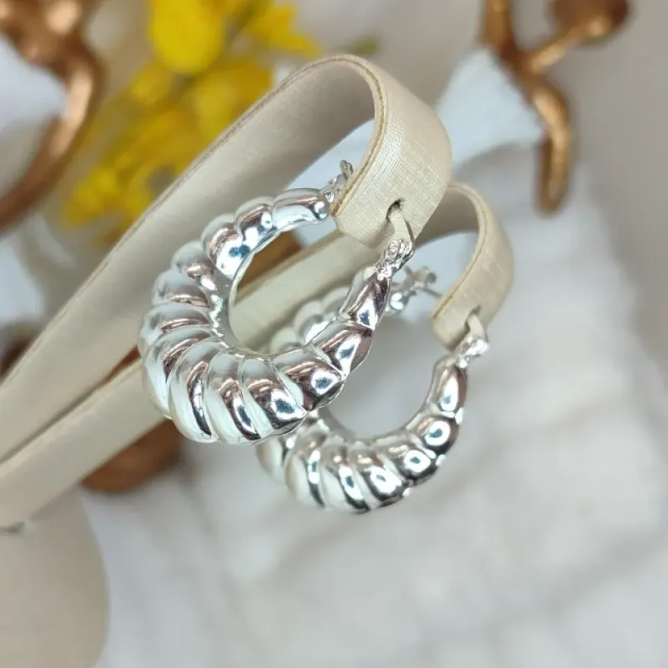 Argola Grande Trabalhada Banhada a PrataConfira opiniões e avaliações de clientes!