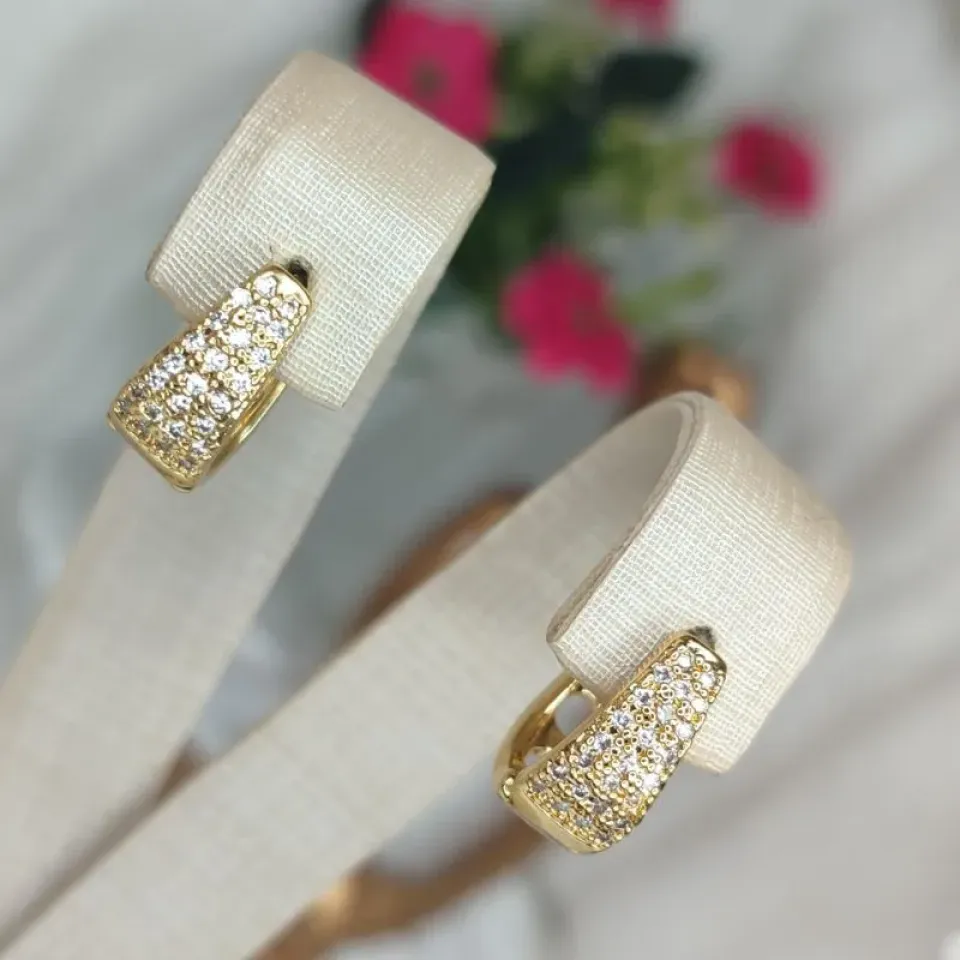 Argola Pequena Gota Cravejada Banhada a OuroConfira opiniões e avaliações de clientes!