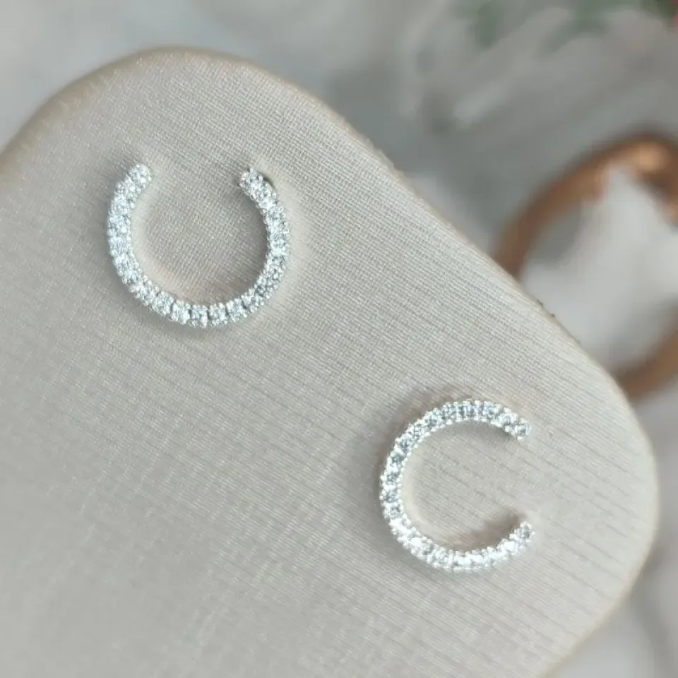 Brinco Aro Cravejado Aberto Banhado à PrataConfira opiniões e avaliações de clientes!