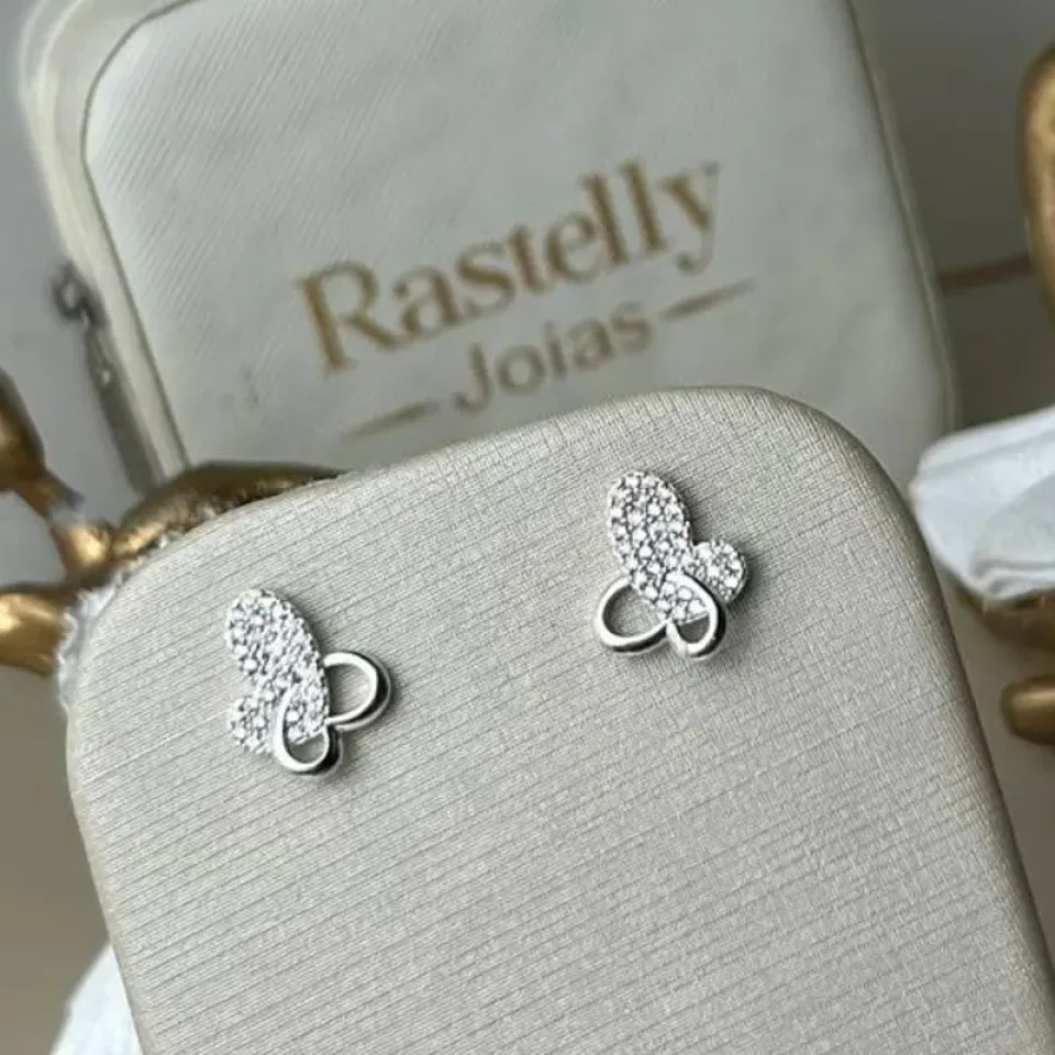 Brinco Borboleta Cravejada Banhado a PrataConfira opiniões e avaliações de clientes!