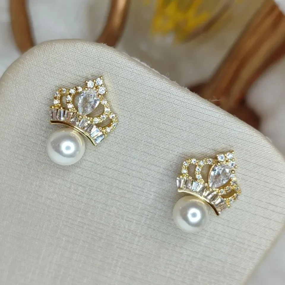Brinco Coroa Pequeno com Pérola Banhado a OuroConfira opiniões e avaliações de clientes!