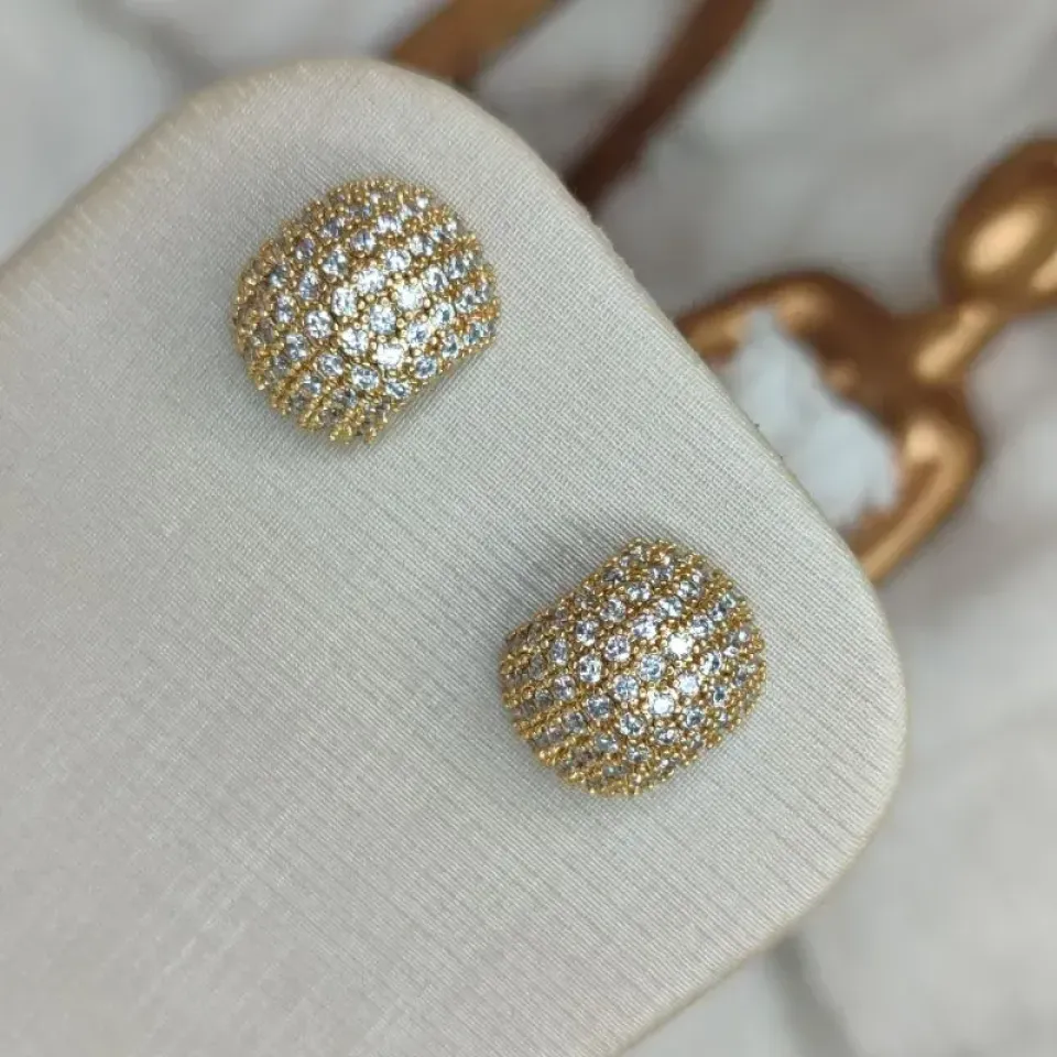 Brinco Cravejado Banhado a Ouro
