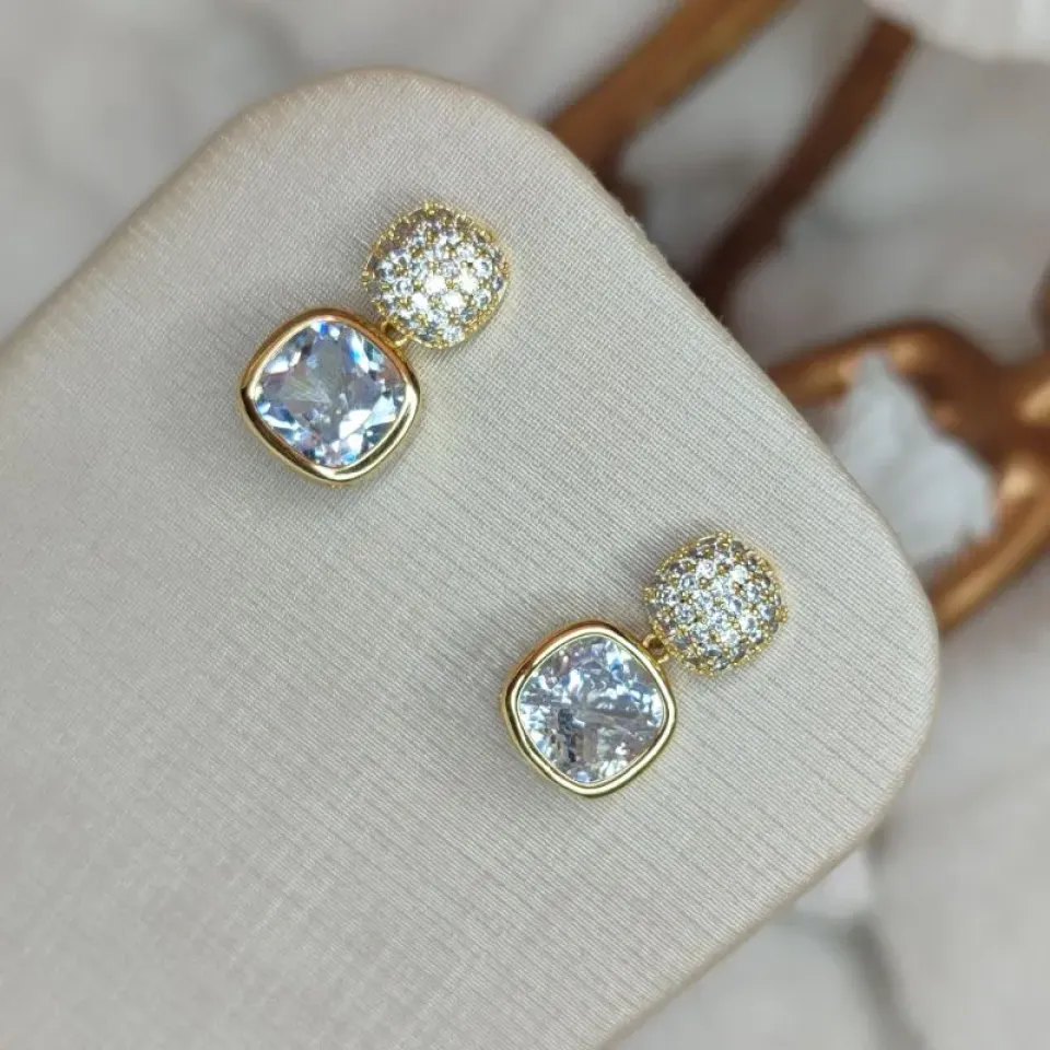 Brinco Cravejado Super Luxo Banhado à Ouro