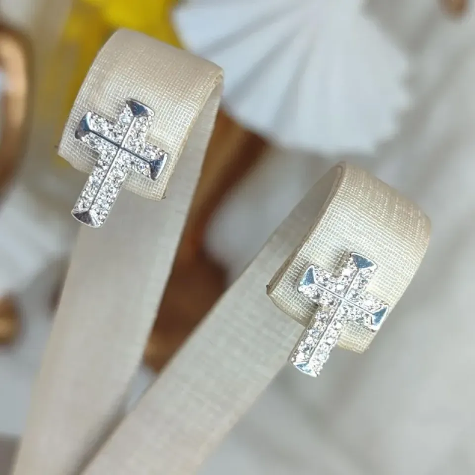 Brinco Cruz Cravejada Banhada a PrataConfira opiniões e avaliações de clientes!