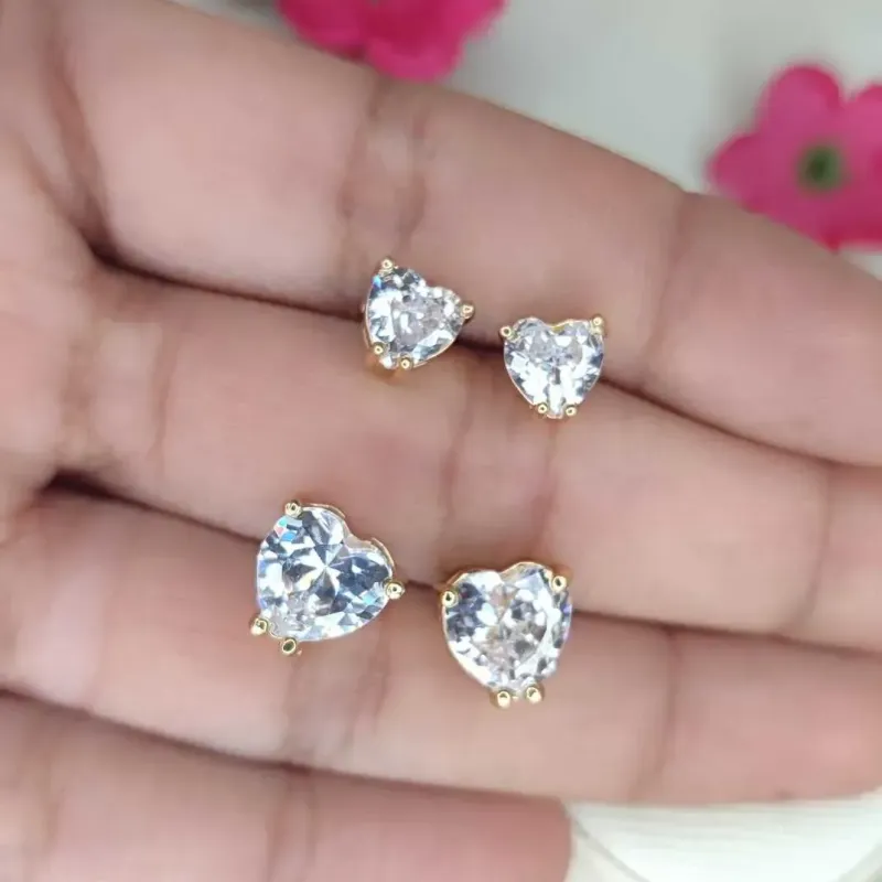 Brinco Duplo Coração em Zirconia Banhado a OuroConfira opiniões e avaliações de clientes!