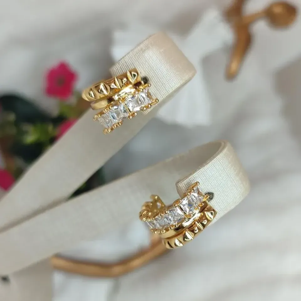 Brinco Elos Cravejado com Zirconia Banhado à OuroConfira opiniões e avaliações de clientes!