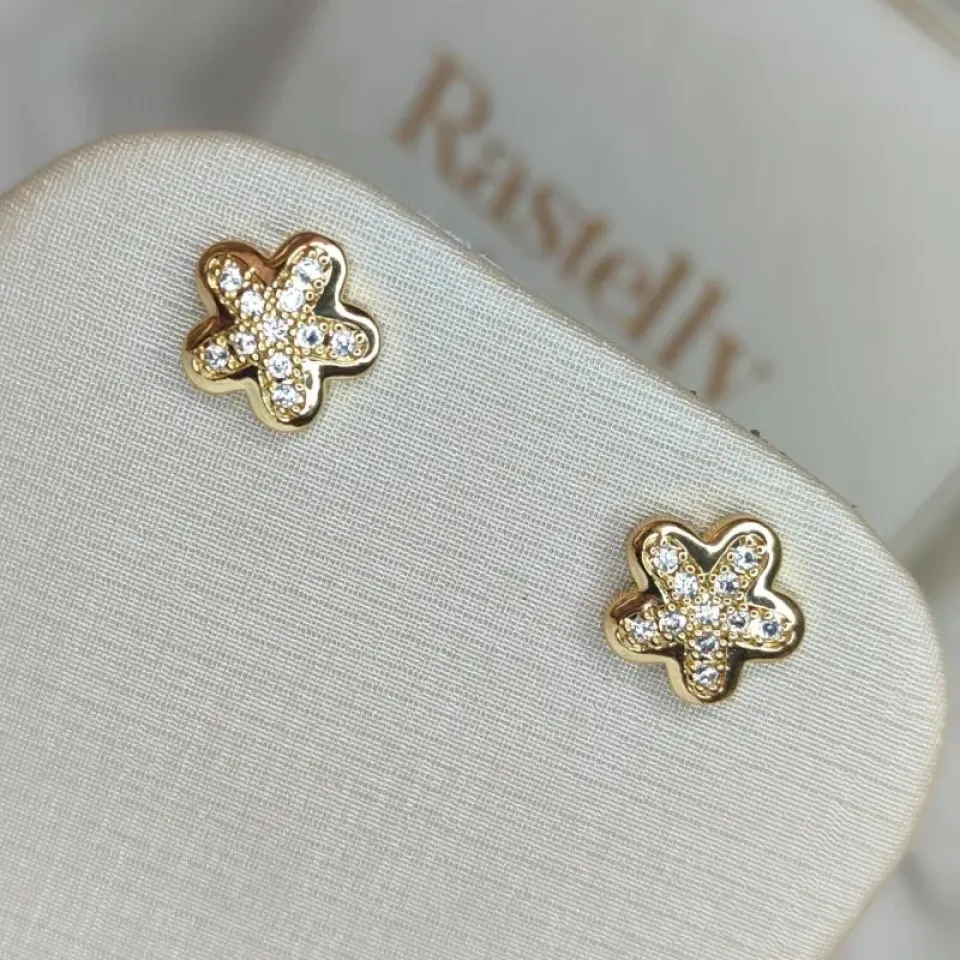 Brinco Flor Cravejada Banhado a OuroConfira opiniões e avaliações de clientes!