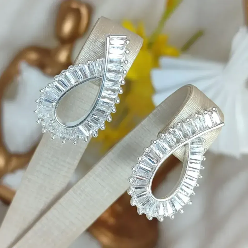 Brinco Cravejado em Zirconias Carré Banhado a PrataConfira opiniões e avaliações de clientes!