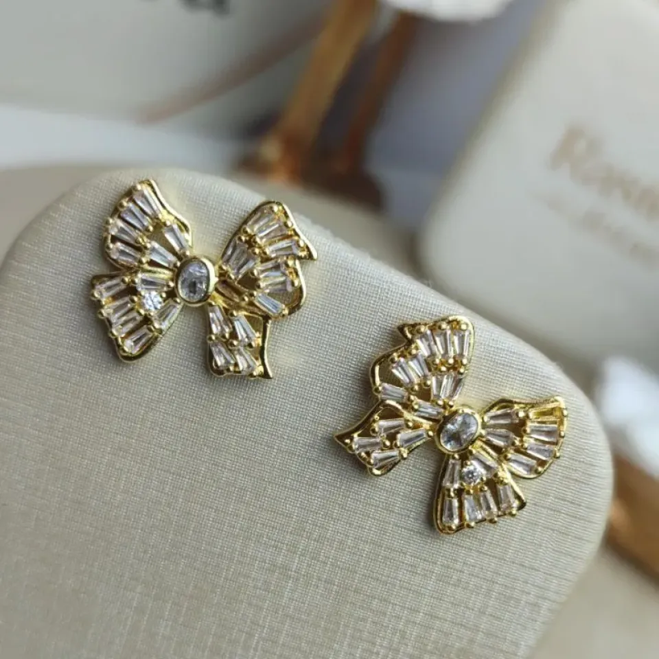 Brinco Laço Grande Cravejado Banhado a OuroConfira opiniões e avaliações de clientes!