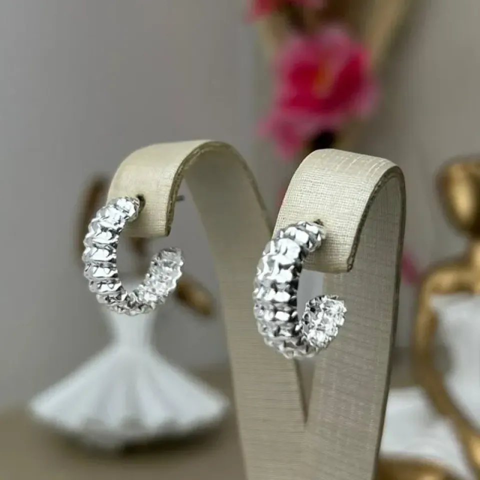 Brinco Meia Argola Sanfonado Banhado a PrataConfira opiniões e avaliações de clientes!