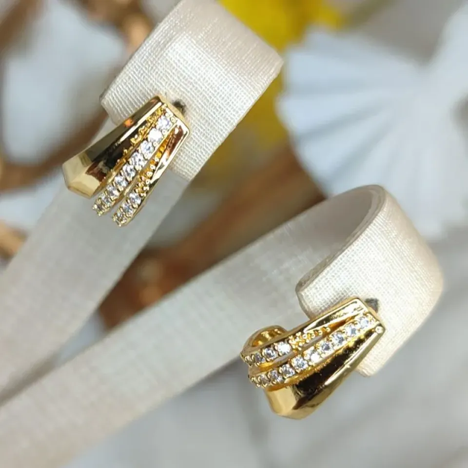 Brinco Traçado Cravejado Banhado a OuroConfira opiniões e avaliações de clientes!