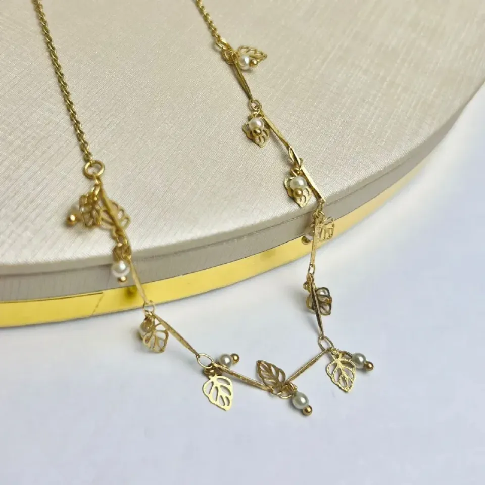 Choker Folhas e Pérolas Banhado a OuroConfira opiniões e avaliações de clientes!