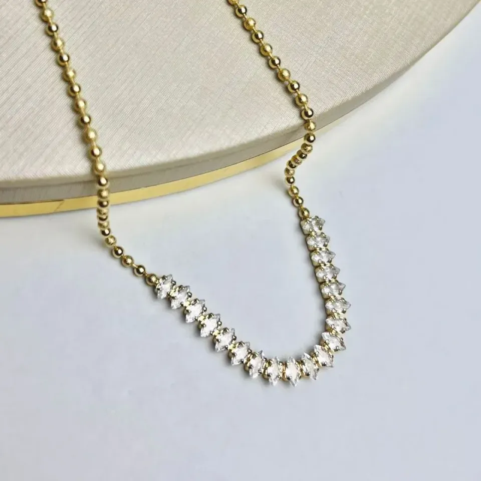 Choker Zircônia Navete Banhada a OuroConfira opiniões e avaliações de clientes!