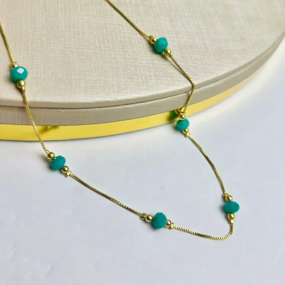 Colar Bolinhas Verdes Banhado a OuroConfira opiniões e avaliações de clientes!