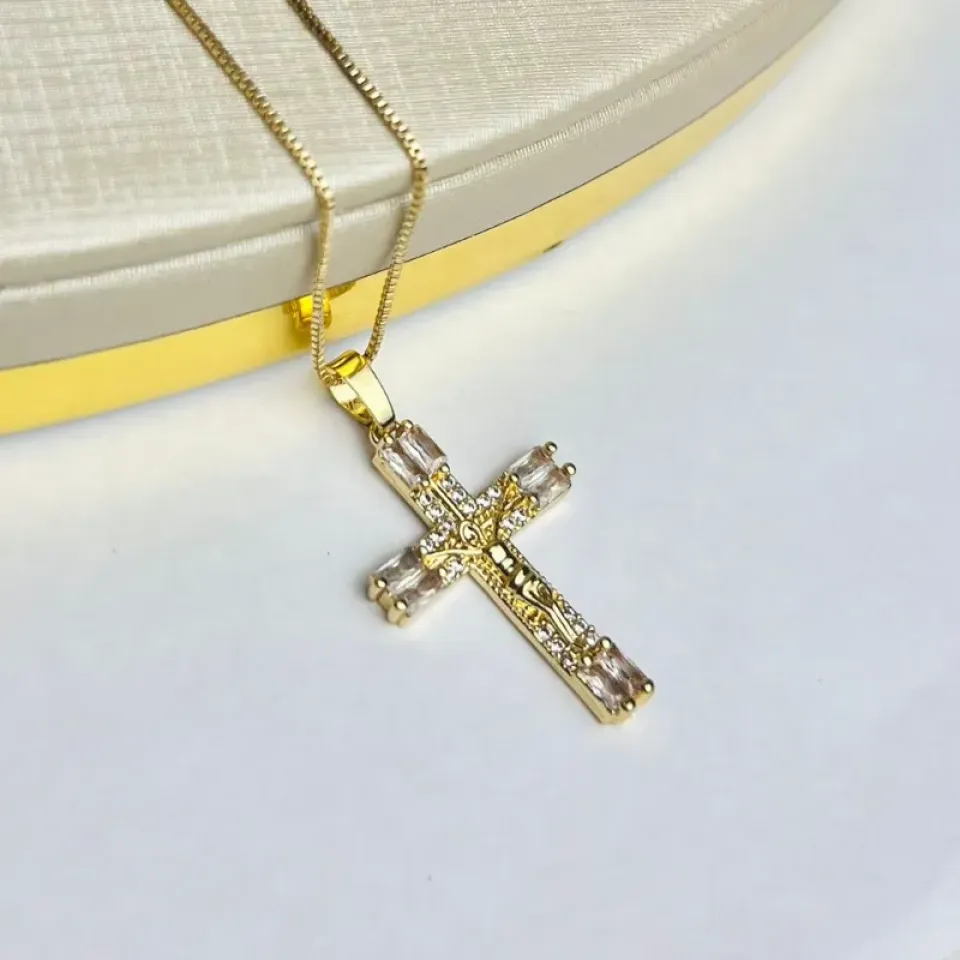 Colar Crucifixo com Jesus Banhado a OuroConfira opiniões e avaliações de clientes!