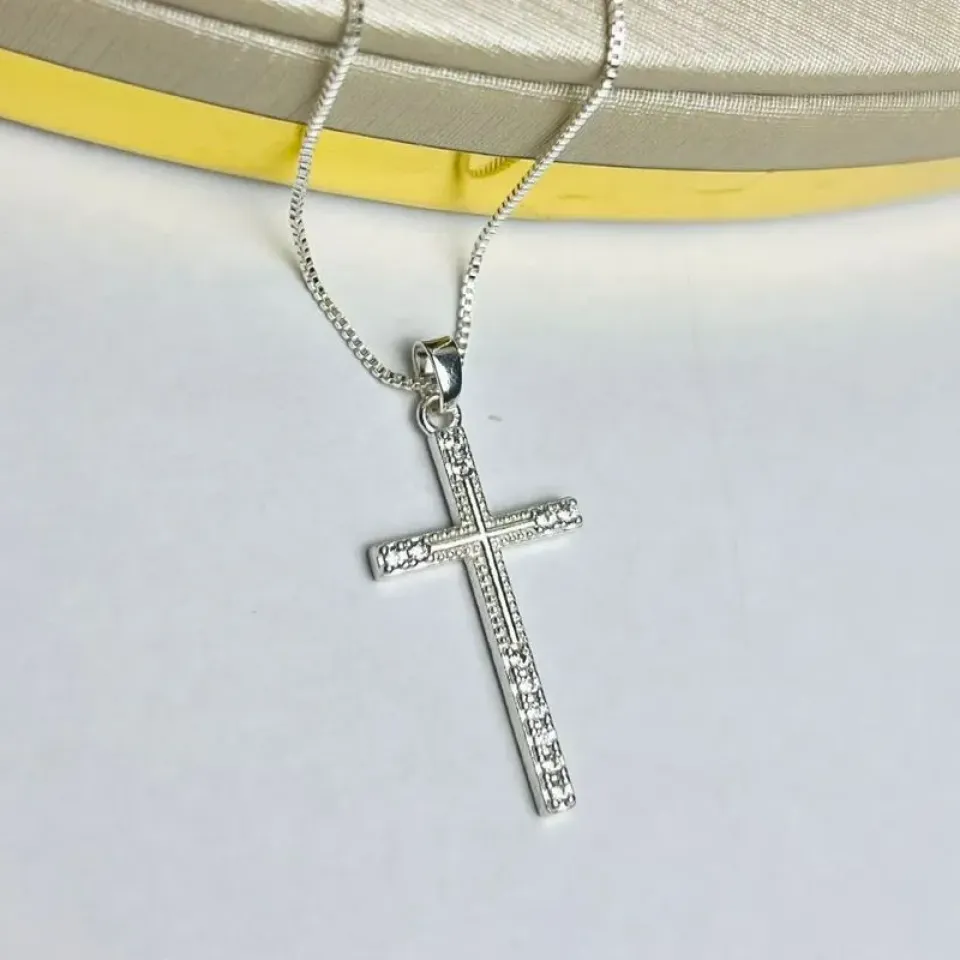 Colar Cruz Cravejada Fina Banhado a PrataConfira opiniões e avaliações de clientes!