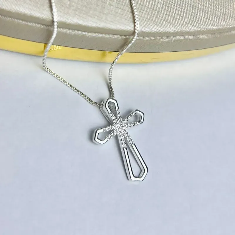 Colar Cruz Vazada Com Zircônia Banhado a PrataConfira opiniões e avaliações de clientes!