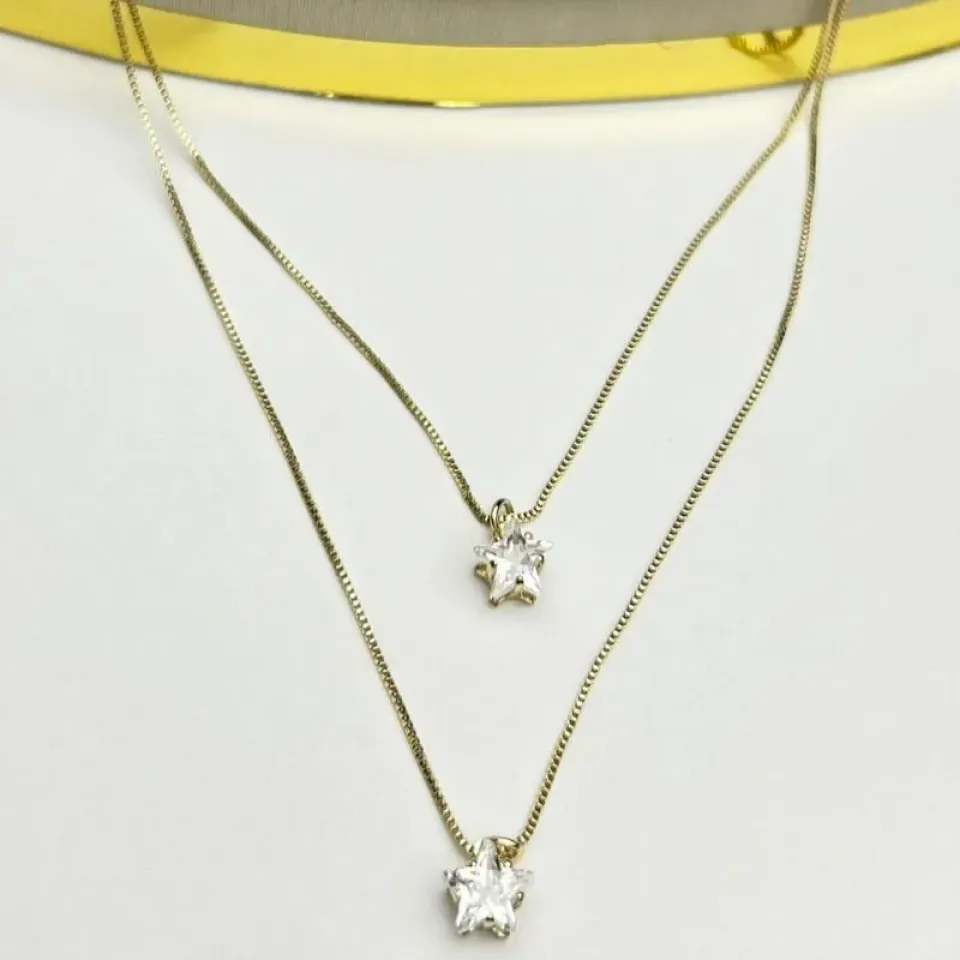 Colar Duplo Estrela com ZircôniaConfira opiniões e avaliações de clientes!