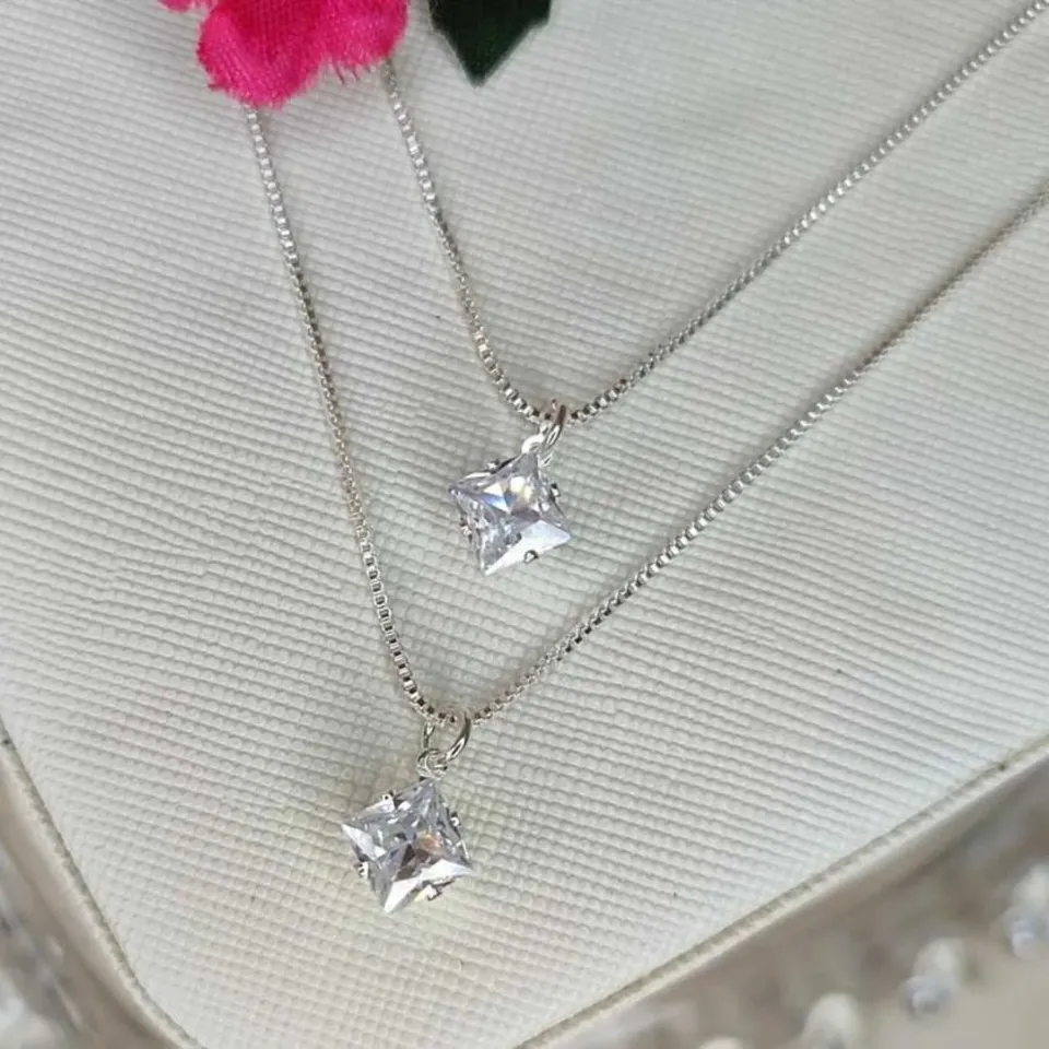 Colar Duplo Quadrado com ZircôniaConfira opiniões e avaliações de clientes!