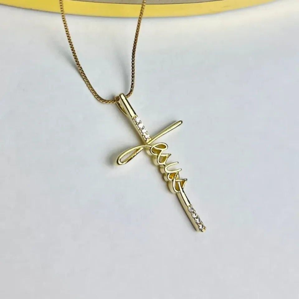 Colar Jesus Cravejado Banhado a OuroConfira opiniões e avaliações de clientes!