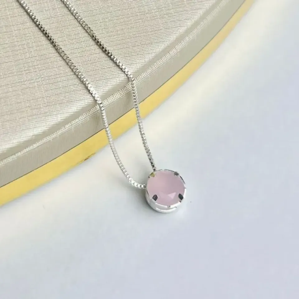 Colar Ponto De Luz Pedra Rosa Banhado a Prata