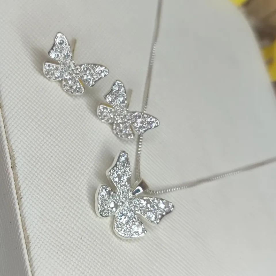 Conjunto Borboleta Cravejada Banhado a PrataConfira opiniões e avaliações de clientes!