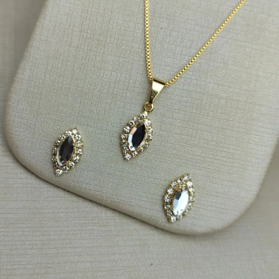 Conjunto Cecília Zirconia Cristal Banhado a OuroConfira opiniões e avaliações de clientes!