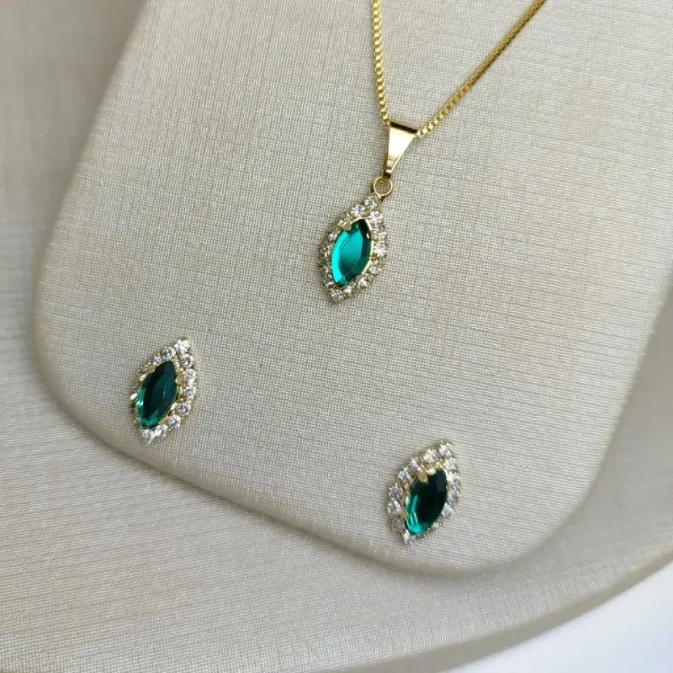 Conjunto Cecília Zirconia Esmeralda Banhado a OuroConfira opiniões e avaliações de clientes!