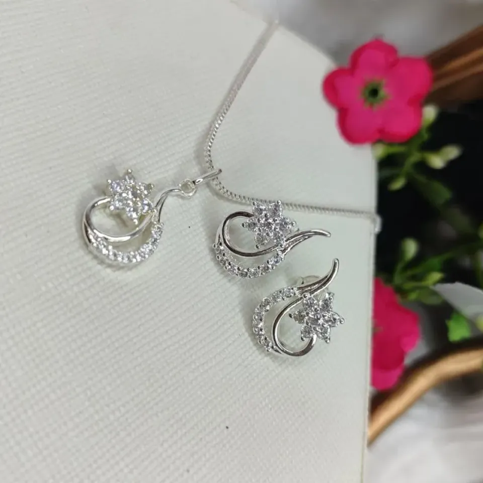 Conjunto Flor em Zircônia Banhado a PrataConfira opiniões e avaliações de clientes!