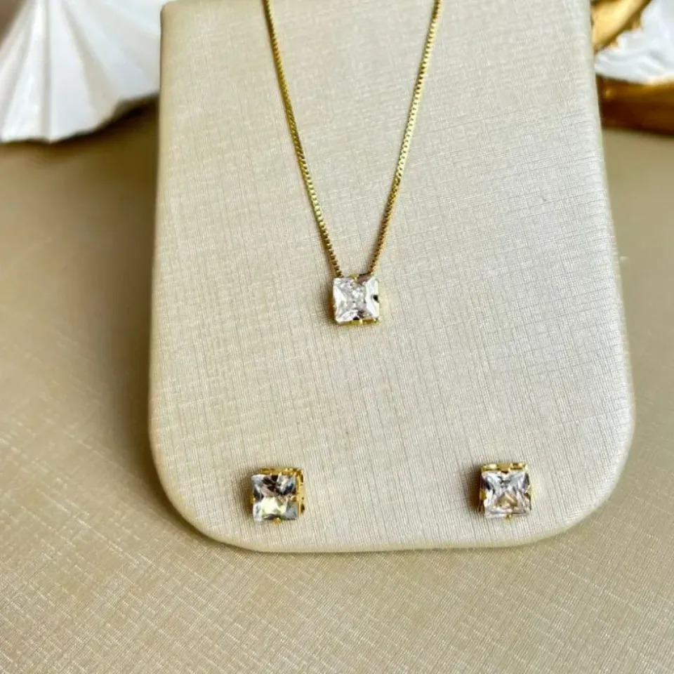 Conjunto Zirconia Quadrado Banhado a OuroConfira opiniões e avaliações de clientes!