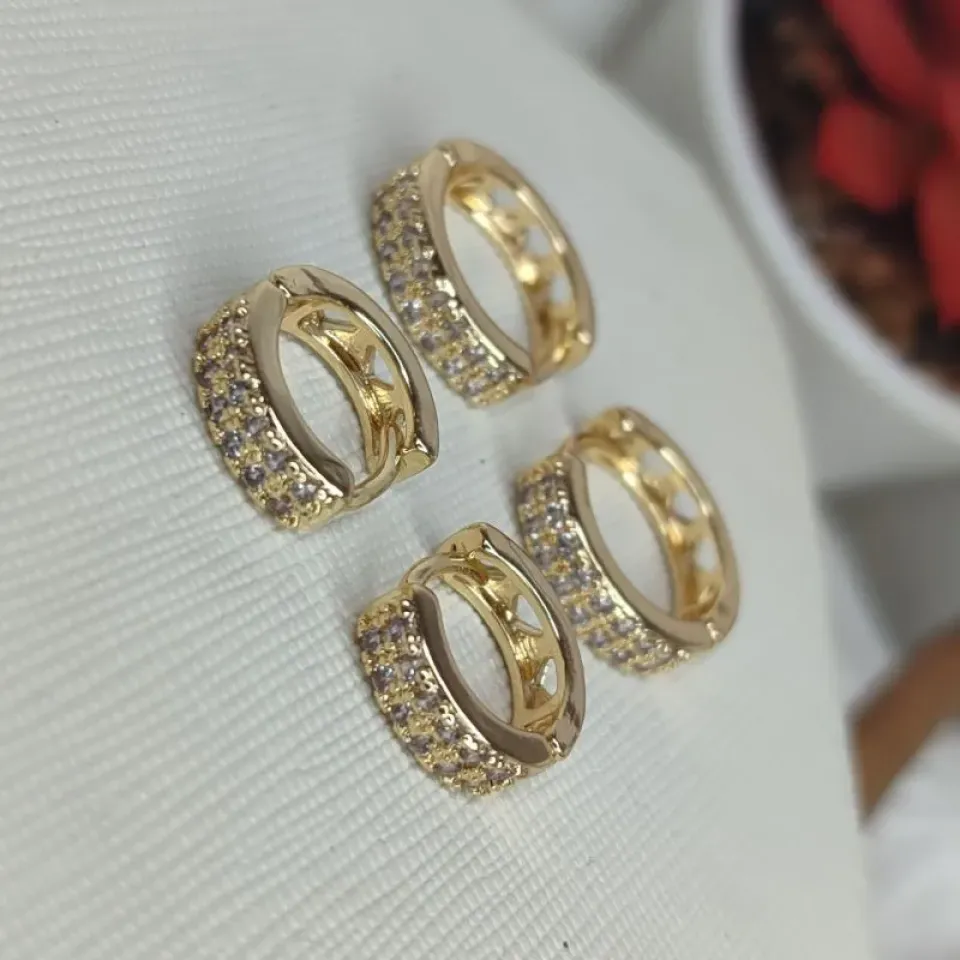 Dupla Argola Cravejada Banhado a OuroConfira opiniões e avaliações de clientes!