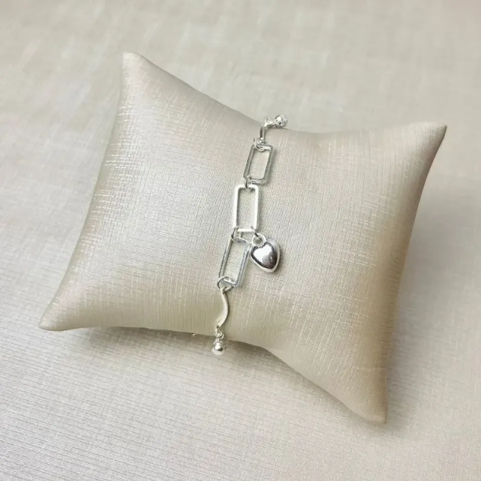 Pulseira Elo Cartier com Coração e Borboletas Banhada a PrataConfira opiniões e avaliações de clientes!
