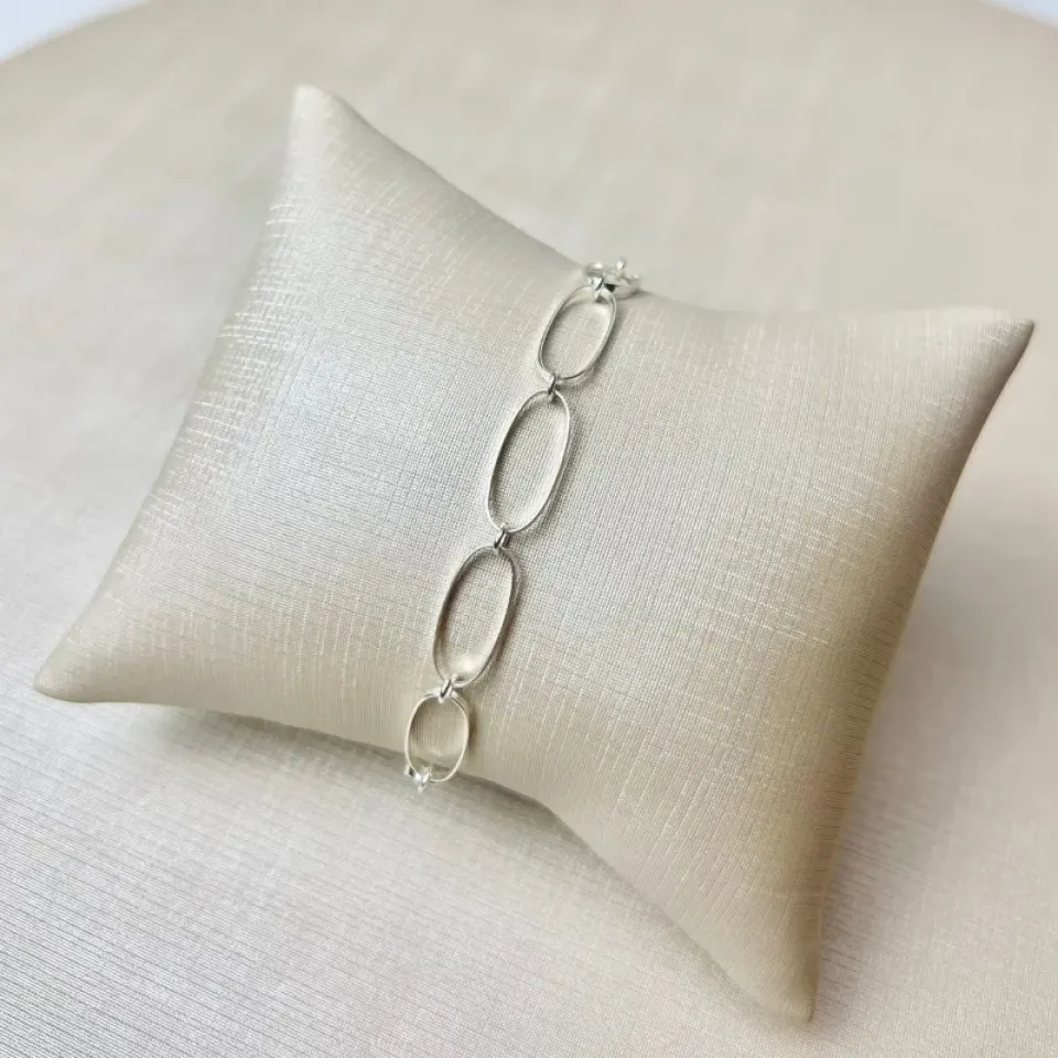 Pulseira com Elos Ovais Banhada a Prata