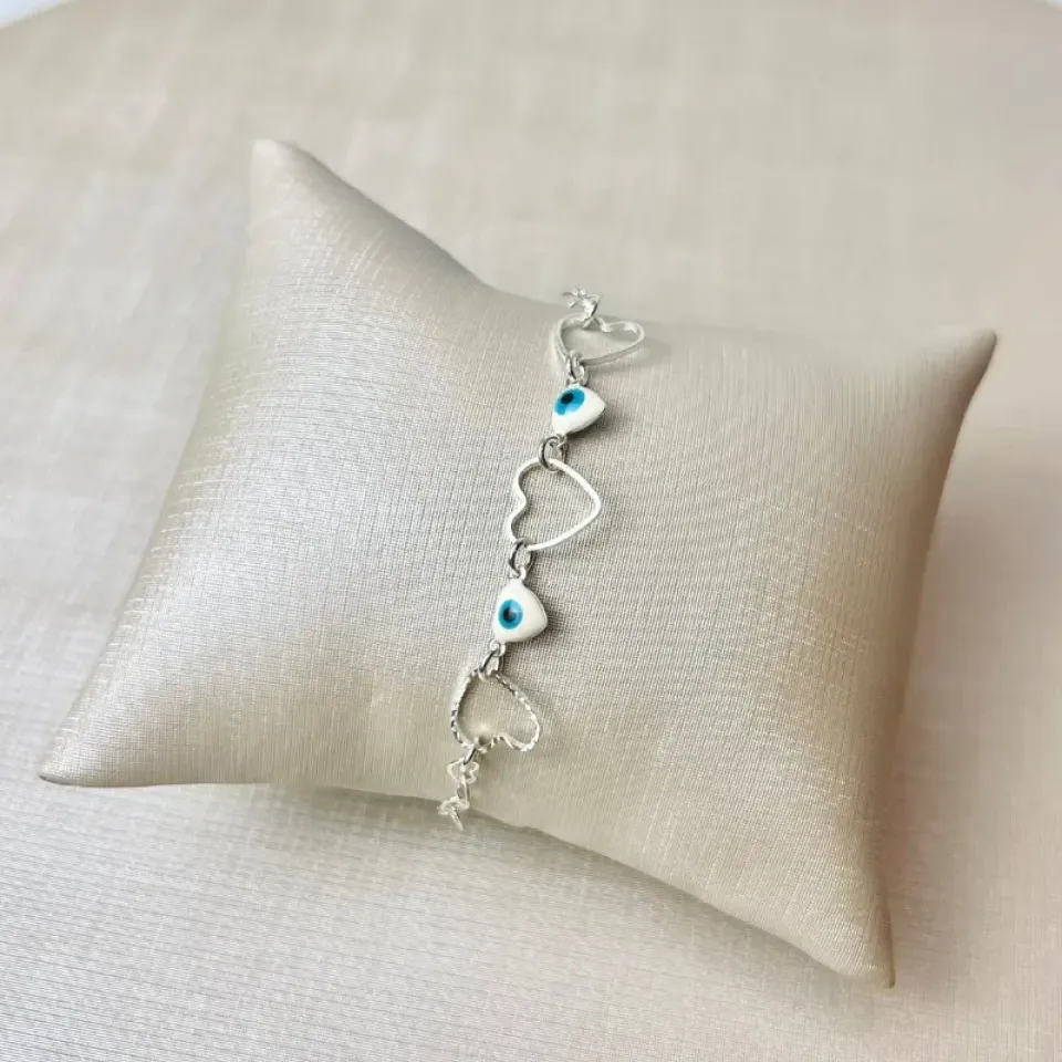 Pulseira Coração Olho Grego Banhada a PrataConfira opiniões e avaliações de clientes!